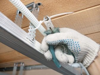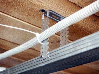 Après l'installation du plafond suspendu, il est nécessaire de procéder à l'installation du câblage pour les appareils d'éclairage. Appliquez deux façons. Si, dans la première méthode, installez avec précaution le canal de câble, ce qui permet d’arranger et de connecter les câbles avec précision et commodité. Dans la deuxième méthode, le fil est placé dans un tuyau ondulé spécial directement à travers tout le cadre. Cela réduira considérablement les coûts matériels.