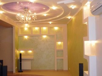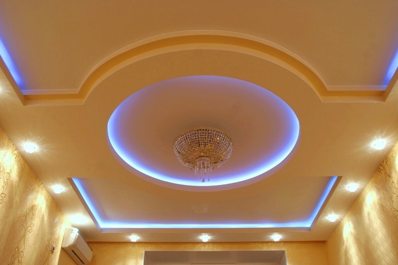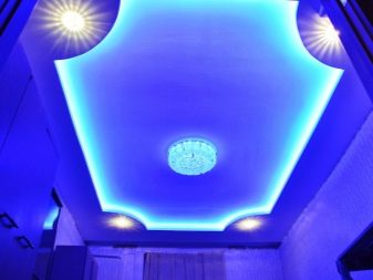 A ce jour, une large gamme de matériaux pour les travaux de finition de plafonds. Les cloisons sèches avec éclairage intégré sont l'un des moyens les plus recherchés et relativement économiques de donner une apparence raffinée au plafond. Lorsque vous utilisez une construction pour cloison sèche, vous pouvez vous permettre d’expérimenter diverses options d’éclairage, par exemple, ajuster le nombre et la configuration des luminaires, et utiliser uniquement des dispositifs qui répondent à vos préférences et à vos goûts.