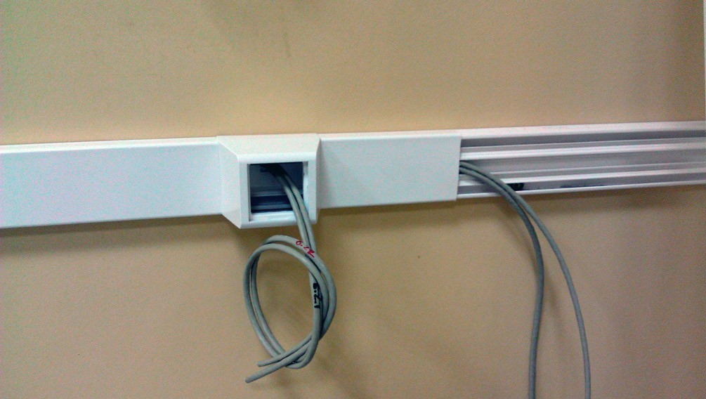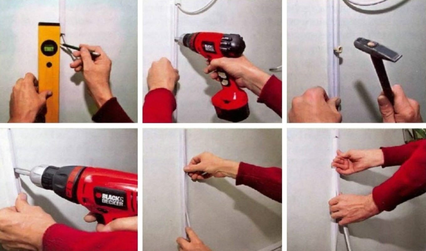 - Le canal de câble doit être situé au milieu du plafond et de la structure de plafond suspendu, qui est fixée au mur. Le seul canal de câble pour le lustre dans ce cas est fixé au plafond. Nous forons à travers les trous de montage des canaux de câbles dans toute la zone de la pièce, en terminant par l'emplacement de l'interrupteur.