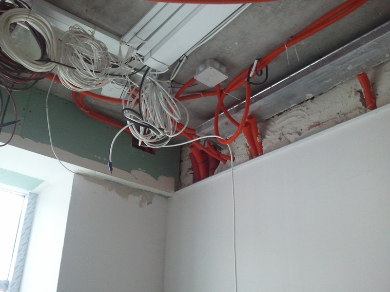 - À la fin des travaux, le câblage de chaque source de lumière est posé, en essayant de laisser une marge de dix à quinze centimètres pour une connexion plus pratique de la lampe.