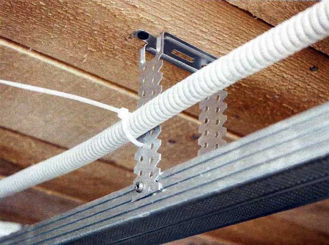 Il est permis d'utiliser les deux méthodes de pose du câblage. Dans ce cas, le câblage des lampes sera posé dans un tuyau ondulé au centre du plafond suspendu. Le câblage principal sera posé sur le canal de câble.