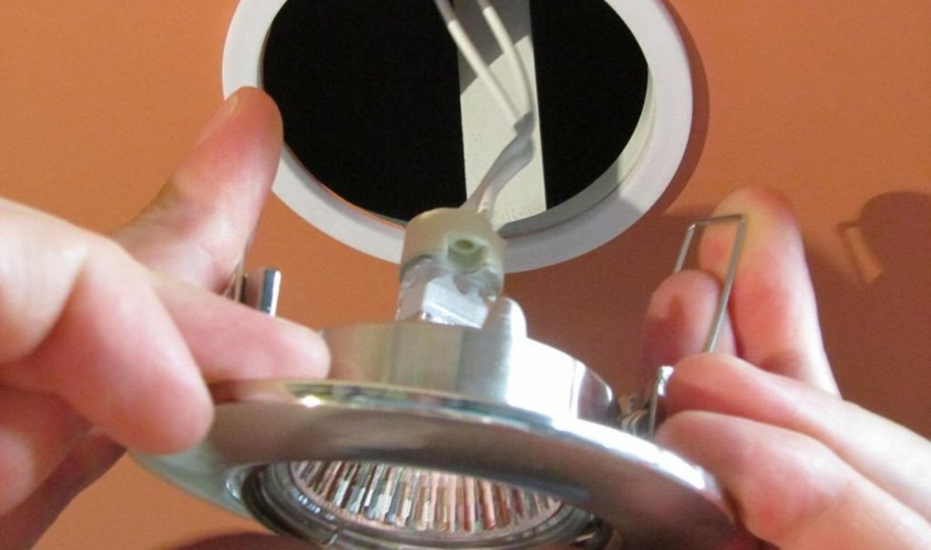 Dans ce cas, un tournevis cruciforme est utilisé. Si le luminaire nécessite l’utilisation d’une lampe halogène, il est recommandé de commencer par installer une ampoule.