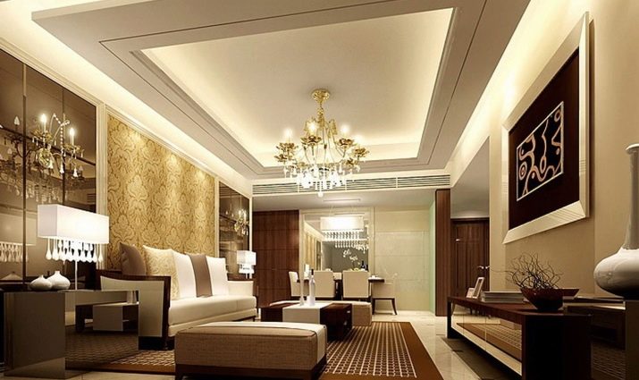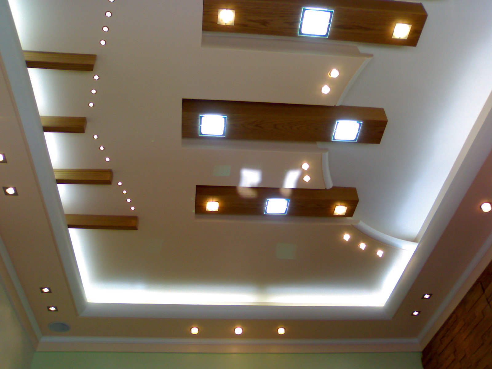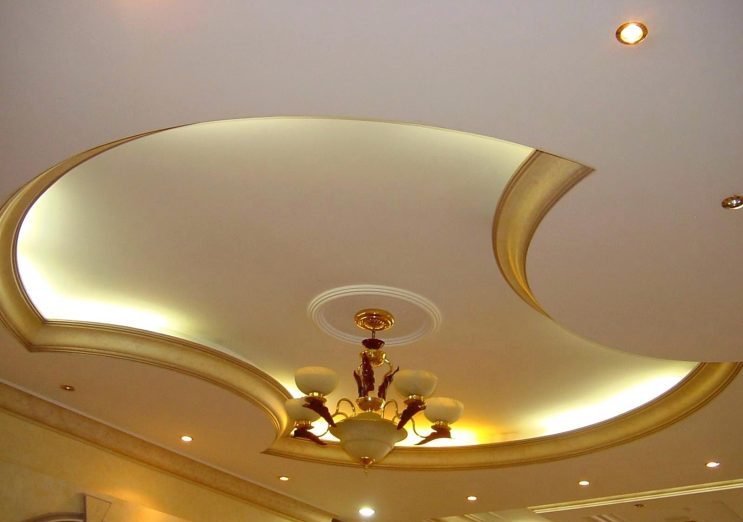 Ces lampes sont peu coûteuses. Ils ont la même apparence sur un plafond à un niveau et sur une structure plus complexe.
