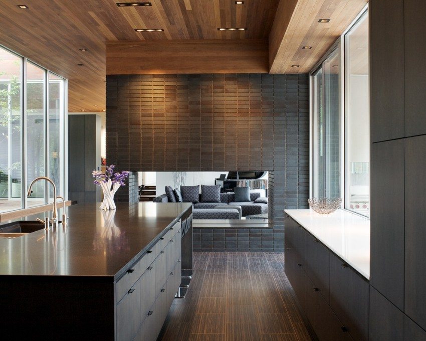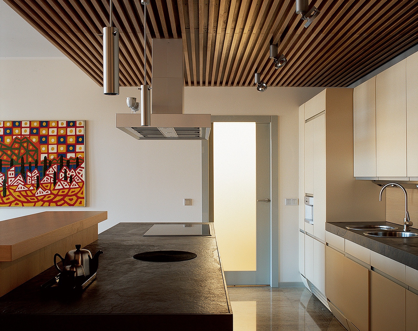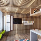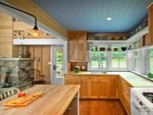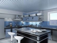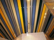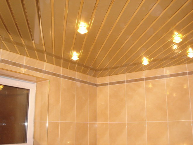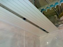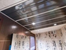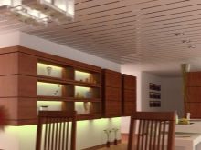 Peu à peu, les plafonds à lattes ont cessé d’être utilisés dans les pièces à vivre, et ont été forcés de sortir dans les salles de bains et les cuisines. En effet, ici ce matériau a le meilleur, puisque son aspect moderne dans l’atmosphère de ces salles ne pose pas de questions.