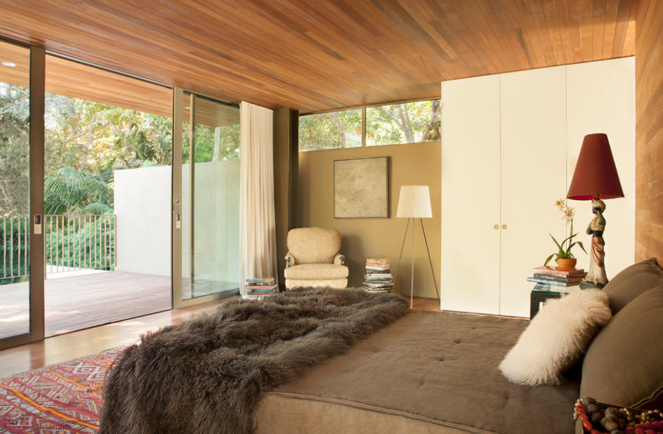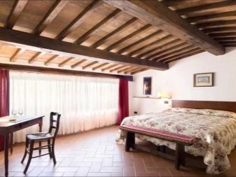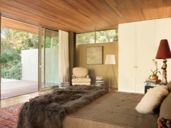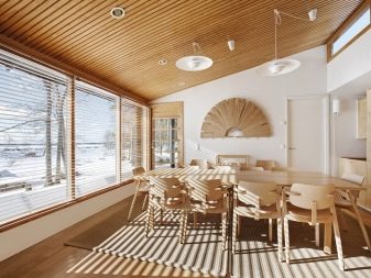 - Appel esthétique. Le plafond en bois crée une atmosphère particulière dans la pièce en lui donnant un aspect distinctif. De plus, cette décision a l'air coûteuse et solide, indiquant le bon goût des propriétaires.