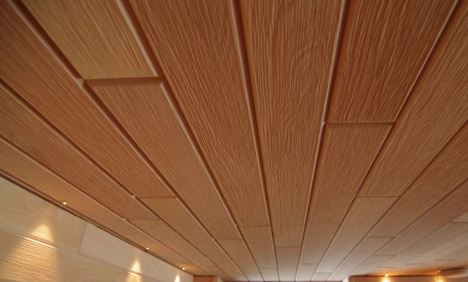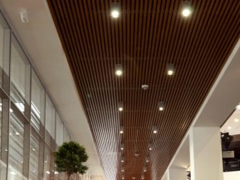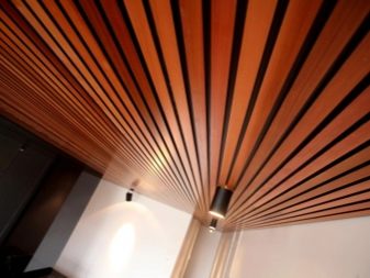 Le plafond du rack ressemble beaucoup à un clapboard pour la façade ou la décoration intérieure, qui semblait être posé au plafond, mais les bandes de plafond peuvent être faites de matériaux différents, et pas seulement du bois. Les panneaux sont légers, de sorte que le plafond ne plie pas sous son propre poids, tout en conservant une apparence attrayante pendant de nombreuses années.