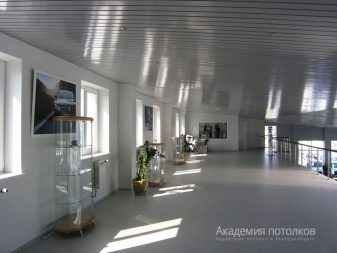L'un des avantages des plafonds à lattes est qu'ils peuvent être installés même dans une grande pièce, même dans une petite pièce.Ainsi, la longueur maximale des rails pouvant être atteints est de 6 m, mais si cette longueur est insuffisante, il est toujours possible de réaliser des modèles sur commande. Un avantage supplémentaire d’une approche individuelle est que Vous pouvez également commander la fabrication d’éléments décoratifs afin qu’ils ne soient pas obligés d’être en donarasch.