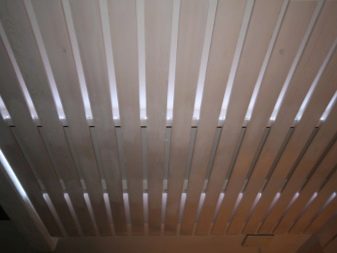 - Plus les lattes sont épaisses, plus le plafond durera longtemps. Il convient de garder à l’esprit ce fait lors du choix. Cependant, les lattes pas toujours épaisses sont une bonne idée, car elles peuvent se plier sous leur propre poids, ce qui gâcherait l'apparence générale de la structure. Pour éviter cela, vous devez utiliser des fixations supplémentaires.