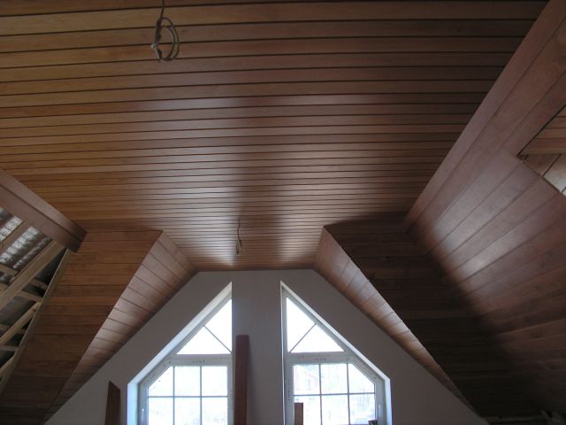 - Le matériau est écologique. Pour beaucoup, cette qualité est importante. Ainsi, le plafond d'un arbre peut être utilisé pour la finition d'une chambre ou d'une chambre d'enfants.