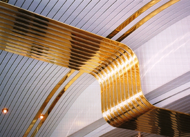 Un autre avantage de l'acier est sa bonne isolation phonique. Si un plafond fermé est sélectionné,alors vous n’aurez pas à construire une isolation phonique supplémentaire et vous ne pourrez donc pas entendre le bruit fait par vos voisins ci-dessus. L'acier est un excellent réflecteur. Grâce à un tel revêtement de plafond, on peut économiser beaucoup d’électricité, car il faut beaucoup moins de dispositifs d’éclairage tout en maintenant l’intensité et la quantité de lumière. Les structures de rivière en acier sont disponibles dans une grande variété de couleurs.