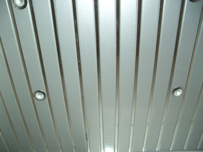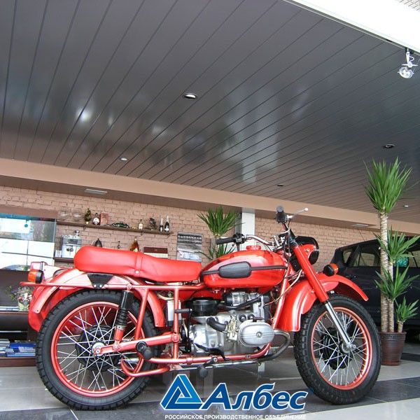 - Les plafonds en aluminium sont faciles à entretenir. Ils ne nécessitent pas de traitement spécial, il suffit de les essuyer de temps en temps avec un chiffon humide pour les débarrasser de la saleté et de la poussière.