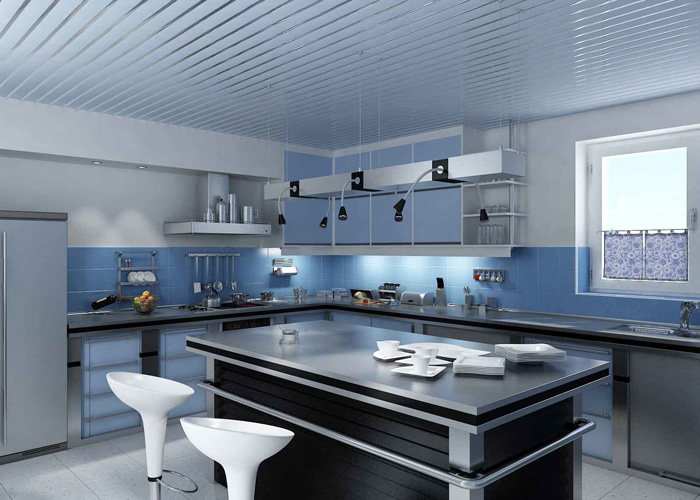 Les plafonds en acier sont utilisés pour les travaux de parement. Les Reiki sont en acier galvanisé, résistant à toutes sortes d'influences, y compris mécaniques. L’acier étant un matériau durable, l’achat d’une telle option pour la décoration intérieure n’est pas pratique. À la maison, des rails en acier garnissent les plafonds des balcons, des auvents, des belvédères et des terrasses. Les plafonds à lattes d'acier se trouvent souvent dans les bâtiments publics, tels que: