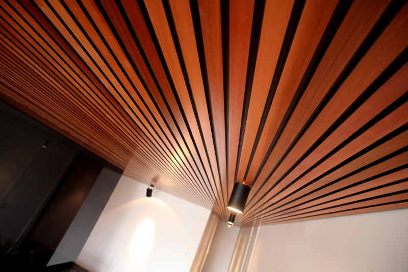 - Ventilation Quel que soit le type de plafond choisi, il existe un écart imperceptible entre les lattes. L'air peut circuler librement à travers ces vides, il ne peut donc y avoir d'effet de serre.