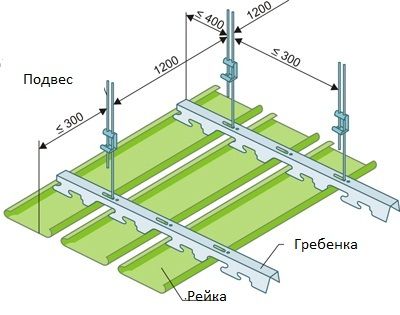 Le plafond de ce type consiste en un cadre léger sur lequel sont fixées les lattes. Le cadre lui-même comprend des rails qui remplissent la fonction de support.