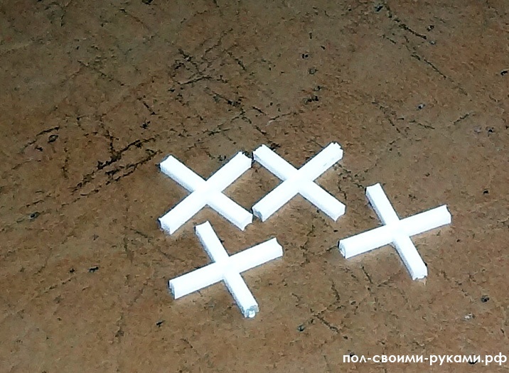 Pour plus de commodité, vous pouvez utiliser des croix en plastique spéciales, qui sont généralement installées lors de la pose de carreaux, de manière à ce qu'elles soient uniformes. Ici, vous pouvez traverser pour vérifier la distance entre les lattes d'un côté et de l'autre, de sorte que ce soit la même chose. À ces fins, vous pouvez utiliser une petite règle.