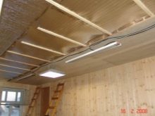 - Si vous venez de commencer à construire une maison, il convient de s’attaquer à l’isolation du plafond. En ce moment, le plafond est constitué de poutres en bois ordinaires. Ensuite, vous pouvez poser un appareil de chauffage entre eux et le "coudre".