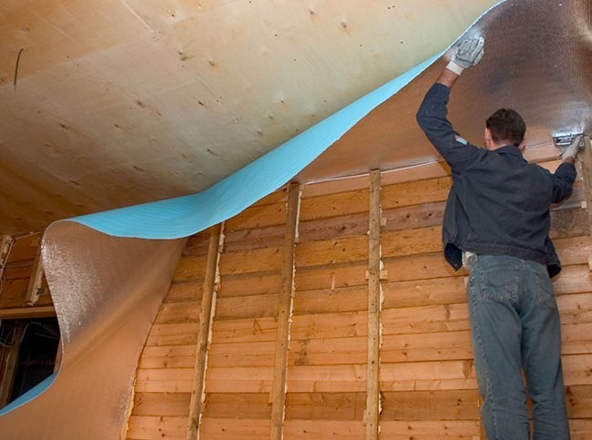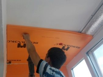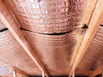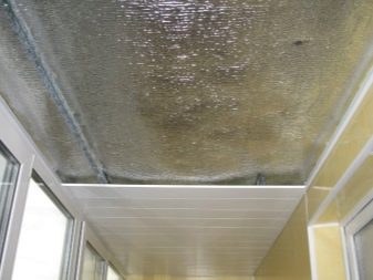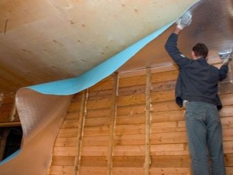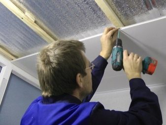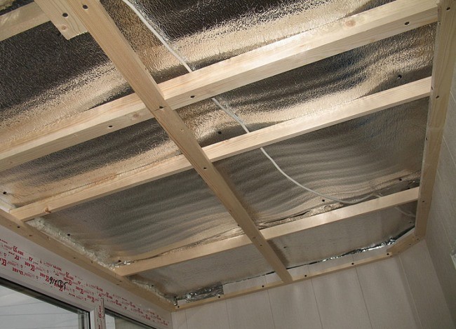 Pour installer penofol également besoin de préparer le cadre. Ensuite, vous devrez mettre un appareil de chauffage dessus (côté feuille d'aluminium à l'intérieur de la pièce). Le matériau chauffant peut être cloué à la structure du cadre avec des clous. Les lacunes pour la ventilation doivent être laissés des deux côtés.par conséquent, vous devrez installer la deuxième caisse par le dessus - des feuilles de placoplâtre y seront fixées.Dans ce cas, vous pouvez également vous référer au plafond tendu.
