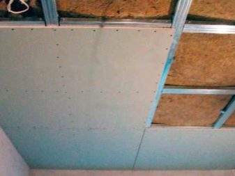 À la fin des travaux, des feuilles de gypse sont fixées à la caisse. Ainsi, il s'avère une sorte de plafond suspendu. Si vous ne souhaitez pas installer de cloison sèche conventionnelle, vous pouvez vous tourner vers l'installation de la structure tendue.