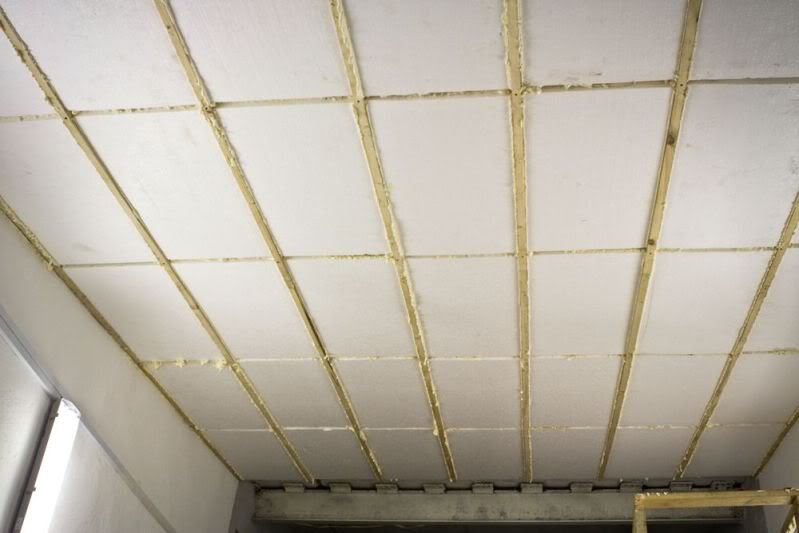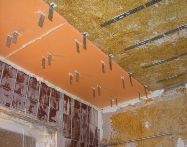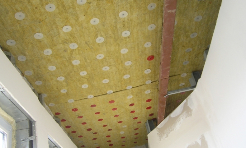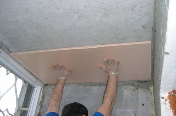 - Une isolation sous forme de plaques peut être montée au plafond avec de la colle. Pour cela, il est possible d'utiliser un composé à base de ciment fiable. Les maîtres de maison laissent de bonnes critiques sur cette méthode d'installation, car il leur semble plus facile et plus rapide.