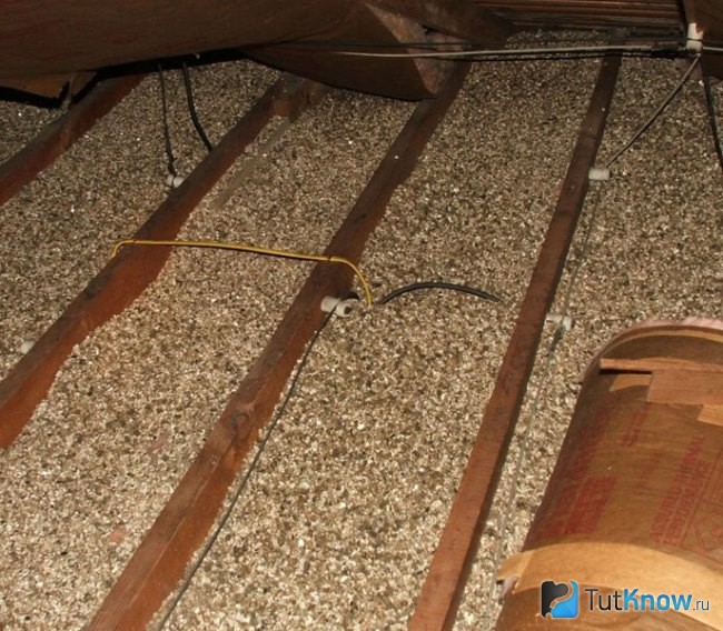 - Ensuite, entre les poutres, il est nécessaire de mettre de la laine minérale de 100-250 mm d'épaisseur (ici, il est nécessaire de calculer la perte de chaleur).