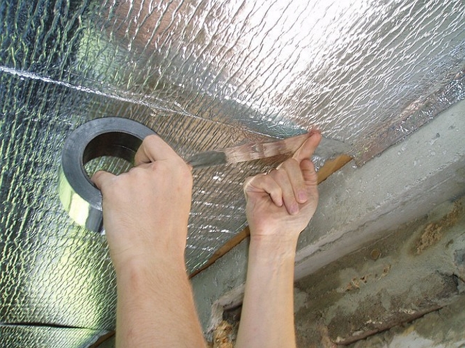 Des feuilles de cette isolation sont recommandées pour monter le joint bout à bout, car ils forment ainsi un seul réseau plus efficace, sans lacunes ni espaces. Les coutures dans ce cas doivent être collées avec un ruban métallique spécial.