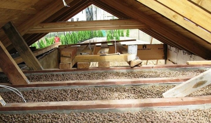 - Après évaporation complète de l'humidité, l'argile devient dure. Pour cette raison, poser le sol pour marcher sur le grenier n'est pas nécessaire.