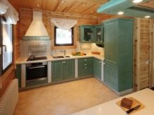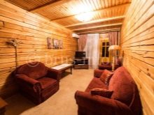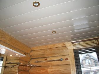 Si vous décidez de décorer la surface avec du bois, vous pouvez le faire à l'aide d'un bar. Cette décoration créera l'atmosphère authentique d'une maison de village. De plus, les plafonds sont souvent garnis de clap - il est facile de l'installer vous-même, car il comporte des joints avec des rainures pour votre commodité.