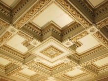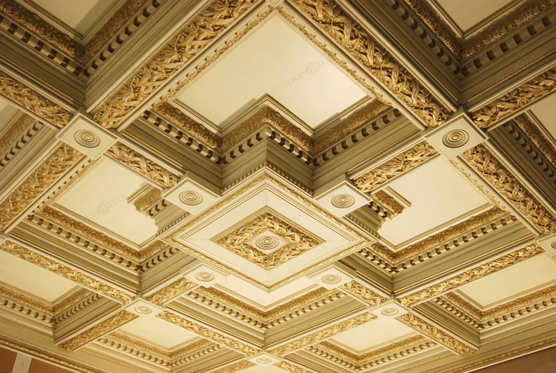 En règle générale, les faisceaux néoclassiques ont un motif en croix. Un tel plafond carré peut avoir fière allure dans un grand espace ouvert.