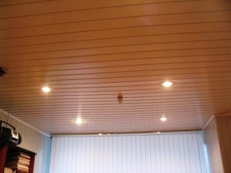 Il est également possible de concevoir le plafond de manière indépendante avec des panneaux en plastique, des plaques de bois pressé ou des clapboards - tout cela n'est pas difficile si vous faites des mesures précises et faites un petit effort. Même une conception visuelle complexe, combinant bois et plastique, il est tout à fait possible de réaliser à la maison.