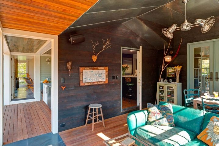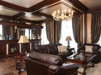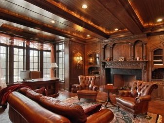 Entre autres choses, vous devriez essayer les teintes sombres qui, en combinaison avec le bois, sont très élégantes. Enfin, il est intéressant de placer des accents dans un intérieur aussi inhabituel grâce à un éclairage: il est préférable d’utiliser plusieurs sources dans des pièces spacieuses.