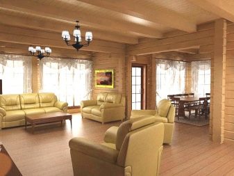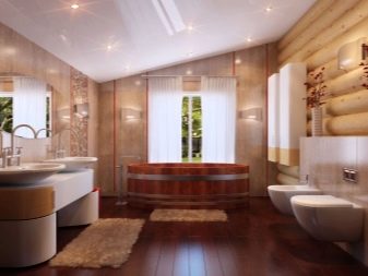 Très souvent, pour la décoration des maisons en bois, les poutres décoratives sont choisies - leur surface interne est vide, il est donc parfaitement possible de construire des lampes et d’assurer un éclairage uniforme de la pièce spacieuse autour du périmètre ou sur toute la surface. Les lampes aideront à mieux distinguer les faisceaux à l'intérieur et rendront le design encore plus intéressant.
