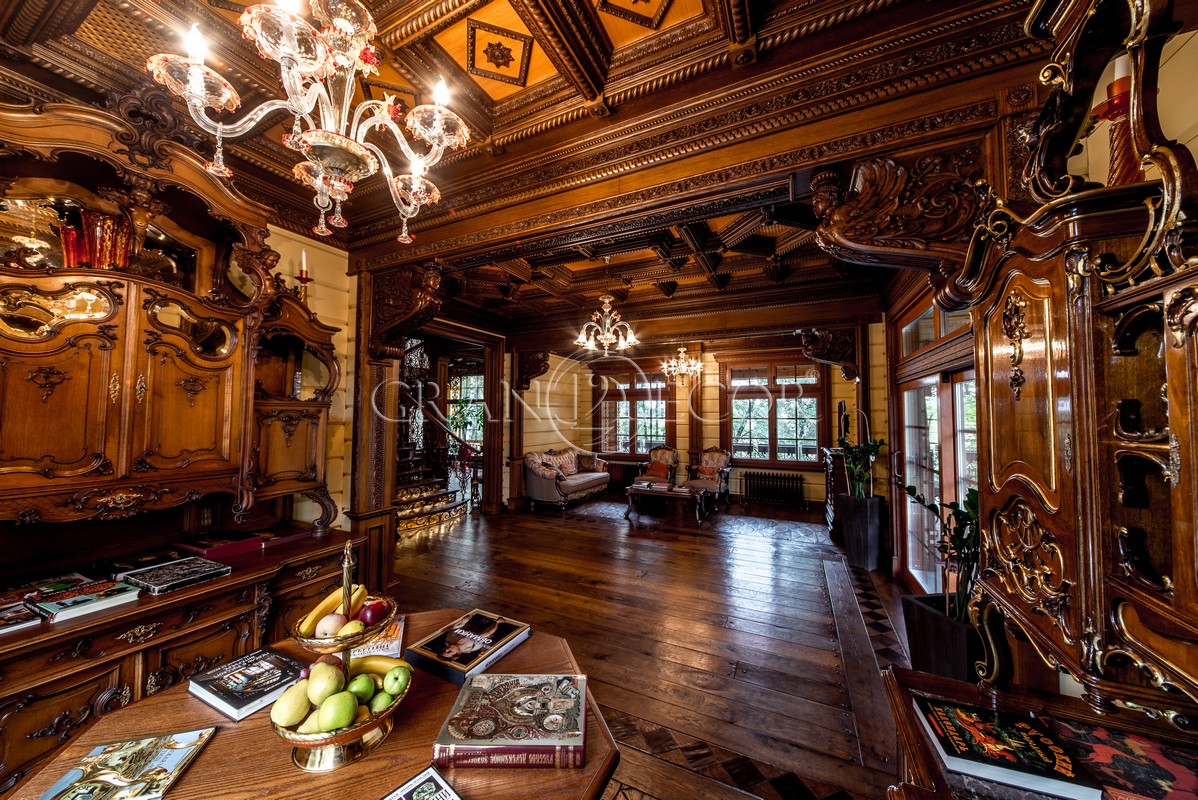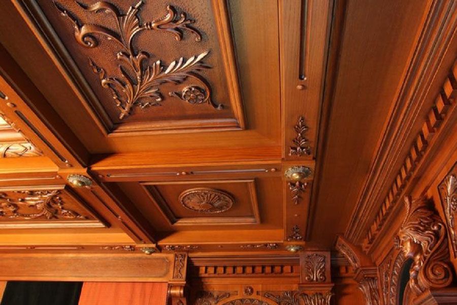 Les éléments décoratifs sculptés sur l'arbre donneront à l'intérieur de l'originalité et de l'originalité. Vous pouvez créer des motifs traditionnels sculptés ou des motifs abstraits modernes. Toutes ces options seront très intéressantes en combinaison avec des boiseries.