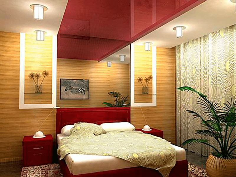 Vous pouvez créer un design très inhabituel si vous combinez correctement différents types de bois.Par exemple, pour finir le plafond dans une version aussi inhabituelle, vous pouvez combiner le bois wengé foncé, le bois rouge et le bois clair. Ils peuvent être alternés comme une mosaïque, ou divisés en plusieurs zones séparées en utilisant une surbrillance similaire.