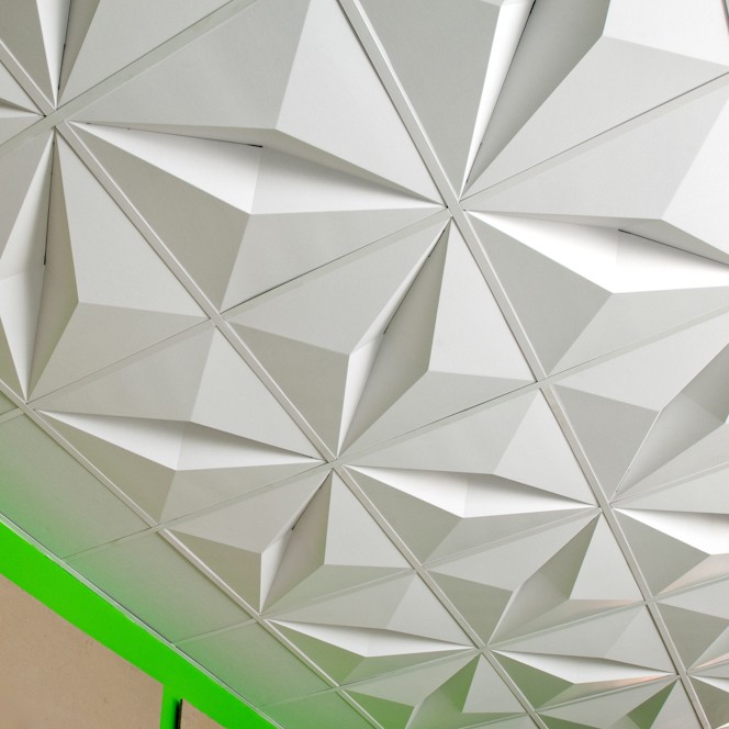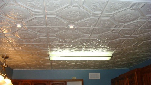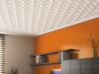 C'est une option économique qui vous permet d'améliorer l'état du plafond avec une dépense minimale de fonds.Dans le même temps, il n'est pas nécessaire de procéder à une réparation préliminaire du revêtement d'origine: le carreau masque bien les irrégularités mineures de la surface.