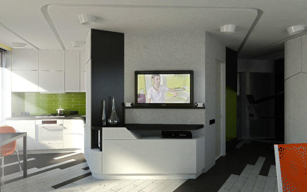 - essayez de déplacer l'accent de la pièce du plafond vers les murs et le sol;