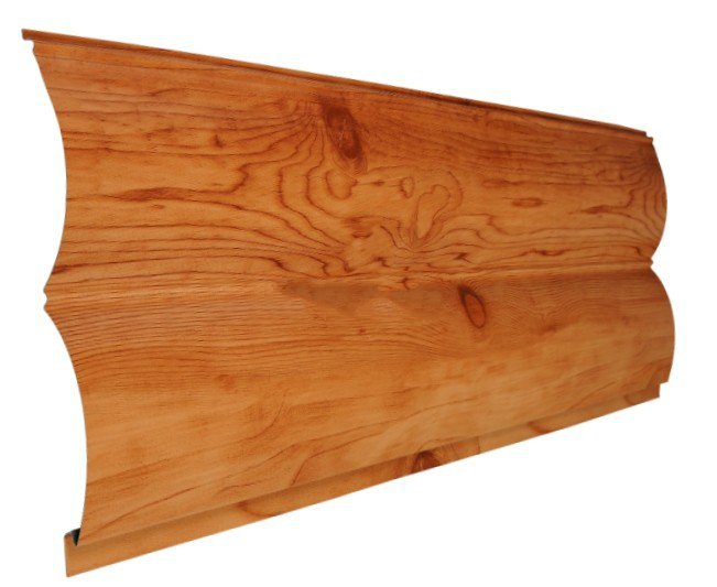 La surface avant du panneau se présente sous la forme d'un demi-cylindre imitant une structure en rondins. Cette finition est idéale pour une maison privée.