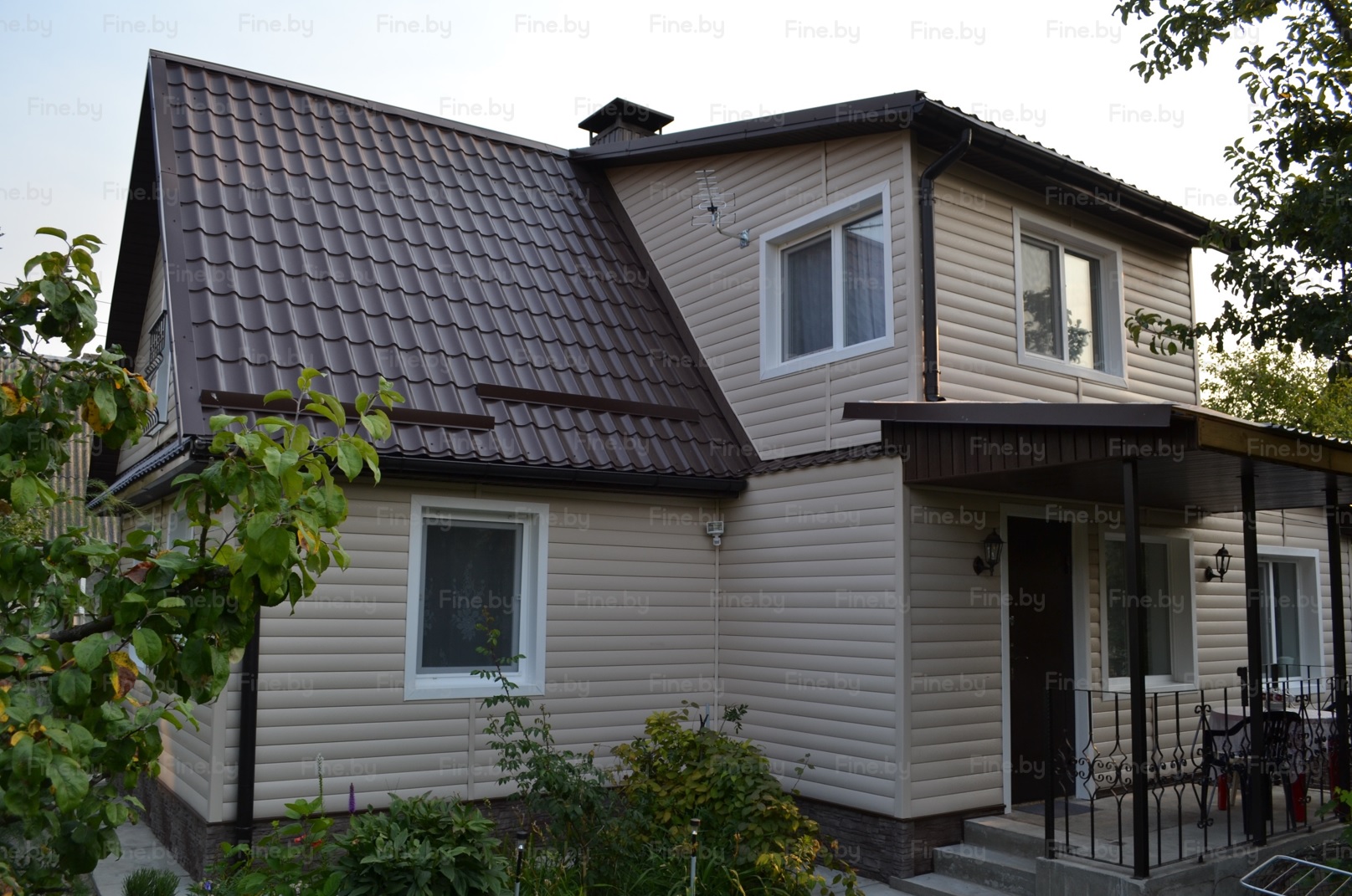 FineBer - maison de parement en vinyle domestique. La forme des panneaux simule deux journaux. Cette reconfiguration du produit réduit la consommation d'éléments de fixation et accélère considérablement le processus d'installation du revêtement extérieur du bâtiment.Les avantages pour le consommateur comprennent le coût relativement bas de ce produit.