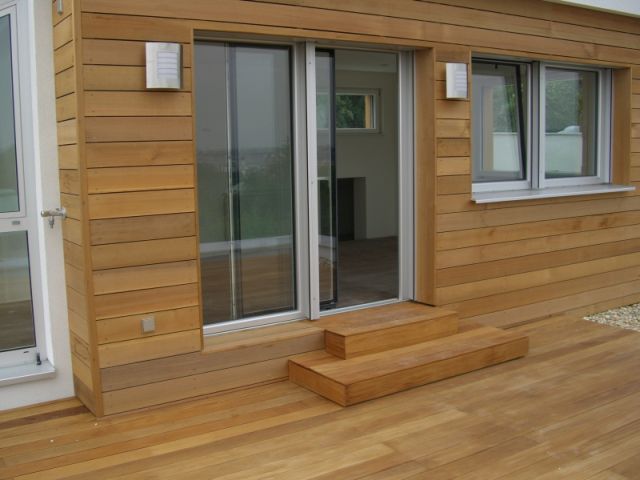 - Panneaux de bois. Le matériau est précieux parce qu’il a une base naturelle, qu’il est écologique, donne à la façade et aux murs un aspect distinctif. L'inconvénient est que pendant le fonctionnement, l'arbre nécessite un entretien constant. Sinon, une telle peau deviendra rapidement inutilisable en raison de l'influence de facteurs externes. L'augmentation récente du coût des matériaux naturels est également un inconvénient majeur.