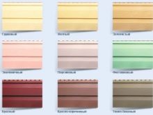 C'est le revêtement de vinyle qui montre le plus grand nombre d'options de couleur. Si vous avez besoin d'un panneau de couleurs inhabituelles, il est préférable de commencer immédiatement à étudier le catalogue de revêtements en plastique. De plus, le matériau est fabriqué en imitant les surfaces en bois, en pierre et en brique.