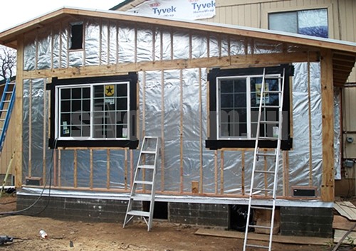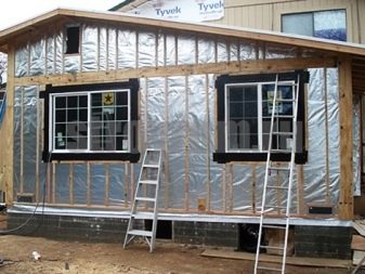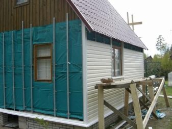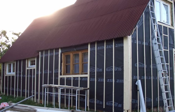 Une membrane coupe-vent est posée sur l'isolant, son installation est superposée, les joints sont collés avec du ruban adhésif. En outre, cette couche est fermée par des panneaux muraux selon la technologie décrite ci-dessus. Il y a un petit espace entre le revêtement et la couche d'isolation.