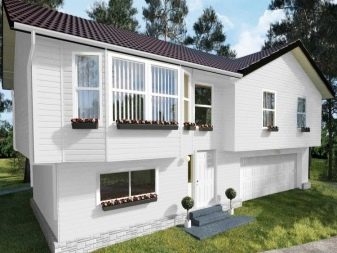 - La maison, garnie de panneaux sombres, a l'air élégant. Les larges plateaux blancs comme neige, ainsi que les accents clairs sous la forme d'une porte d'entrée rouge, permettent d'éviter les tracas.
