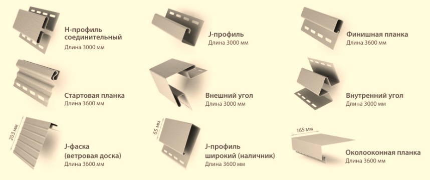 Utilisé pour le revêtement des murs extérieurs. Les panneaux avant sont présentés dans les variétés suivantes: bord de bateau (imite du bois), "à chevrons" (peut être simple, double et triple), blockhaus (imite une surface de rondin), lambris.
