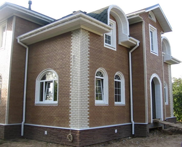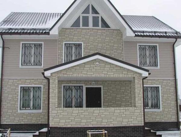 - Tous les types de revêtements qui imitent les matériaux de finition sont harmonieusement combinés les uns aux autres. Win-win, bien sûr, est une combinaison de brique et de pierre. L'objet est instantanément transformé, acquiert un statut et une respectabilité, une noble monumentalité.