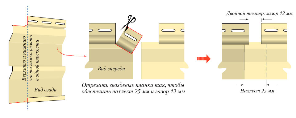 L’installation d’un revêtement de vinyle n’est pas recommandée pour des températures inférieures à 12 degrés. Avant l'installation, les panneaux doivent rester à l'extérieur pendant environ 2 heures. Lors de l'installation, il convient de garder à l'esprit le coefficient de dilatation du matériau, de sorte que les panneaux soient fixés avec un espace de 5-7 mm. S'il est nécessaire d'effectuer des travaux à des températures inférieures à +12 (non recommandé, mais possible), un espace de 10 mm est laissé entre les panneaux.