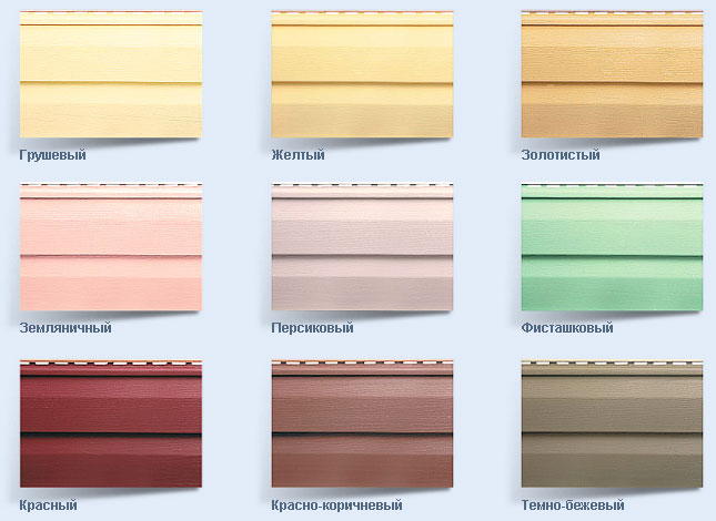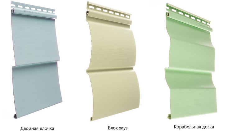 En ce qui concerne la photo, les panneaux de vinyle sont déjà décrits "chevrons"qui peut inclure 1 à 3 "vagues", un modèle de "navire" et un blockhaus.Les panneaux à chevrons simples et doubles et les panneaux de bord sont les revêtements les plus courants en Russie, et le blockhaus est devenu de plus en plus populaire récemment.