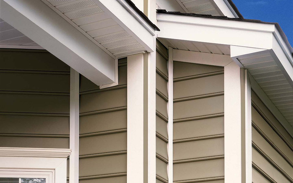 Pour la conception des angles, il est préférable d'utiliser des éléments supplémentaires spéciaux. Dans ce cas, installez d'abord l'élément de coin, puis enroulez-le et fixez le panneau mural. Les éléments architecturaux complexes, ainsi que les fenêtres et autres ouvertures, sont également conçus avec des éléments supplémentaires spéciaux. Les porte-à-faux du toit sont ourlés de soffites.