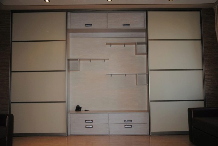 Les avantages du cabinet peuvent inclure la possibilité de déplacer la structure à n’importe quel point de la pièce. Son corps ne diffère pas des armoires standard et est représenté par des murs latéraux et arrière avec un toit, un fond et une base.