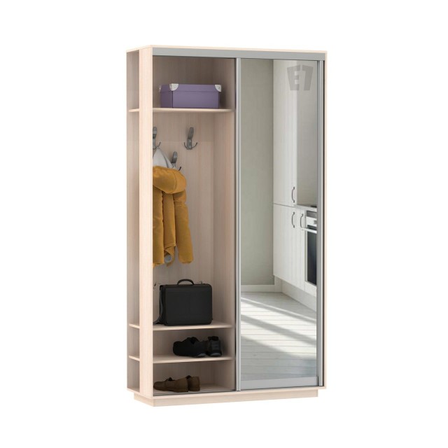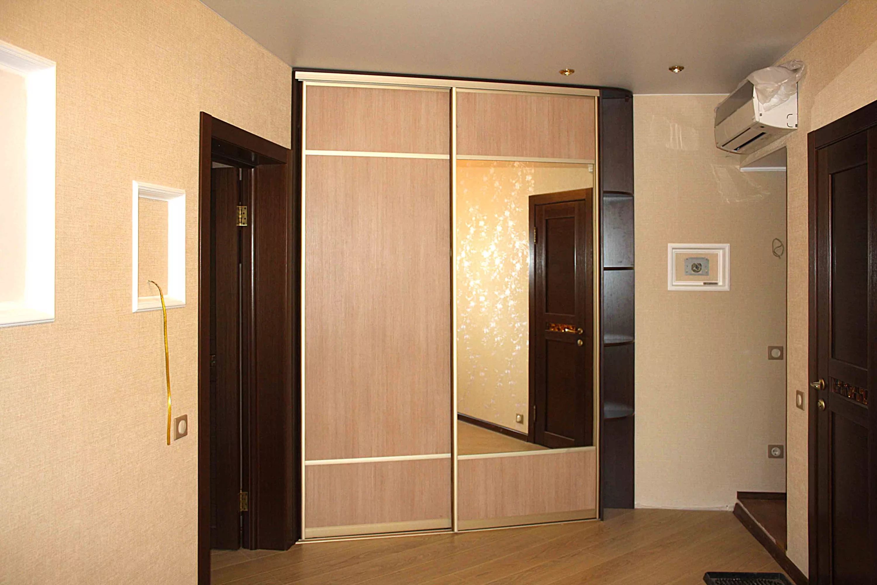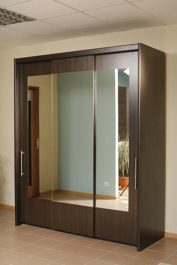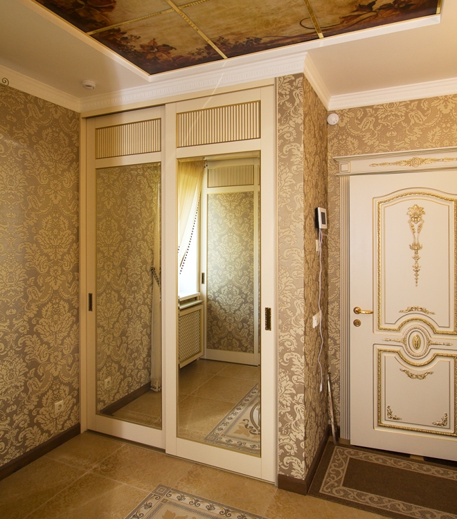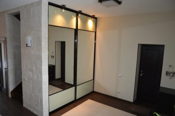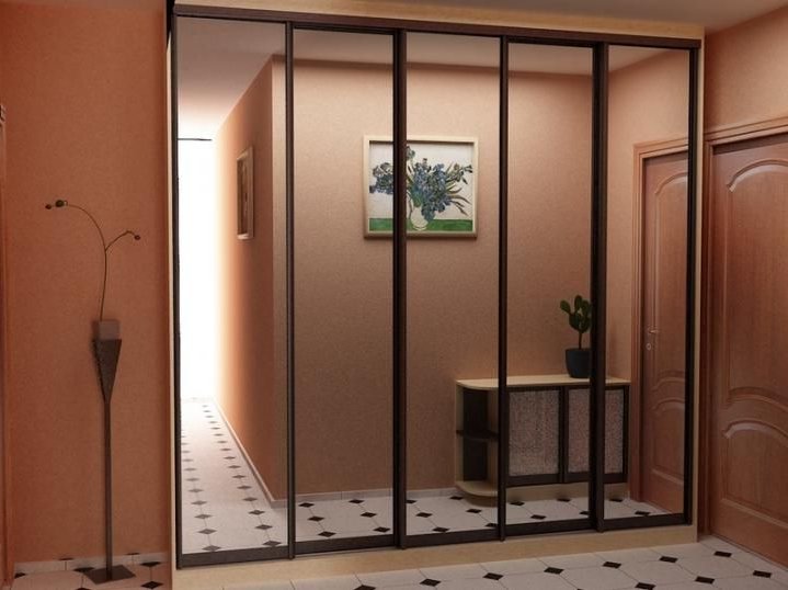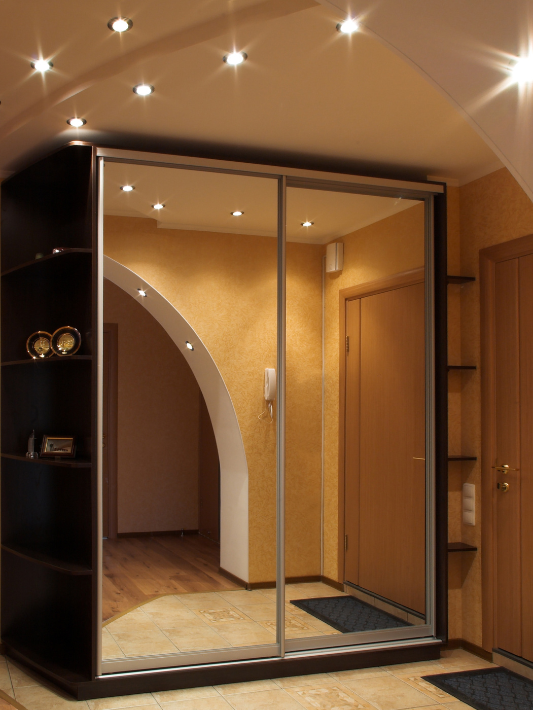 - intégrité de l'espace. Garde-robe intégrée - le modèle le plus populaire de meubles de garde-robe.Ses dimensions allant du sol au plafond agrandissent réellement la pièce, grâce au miroir de la taille de la ceinture. De plus, un espace harmonieux sans niches est créé. Un miroir dans le couloir est une nécessité pour les ménages - c'est un plus. Mais ces meubles ne peuvent pas être transférés - et ceci est un inconvénient;