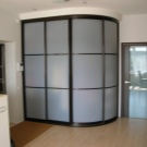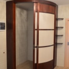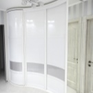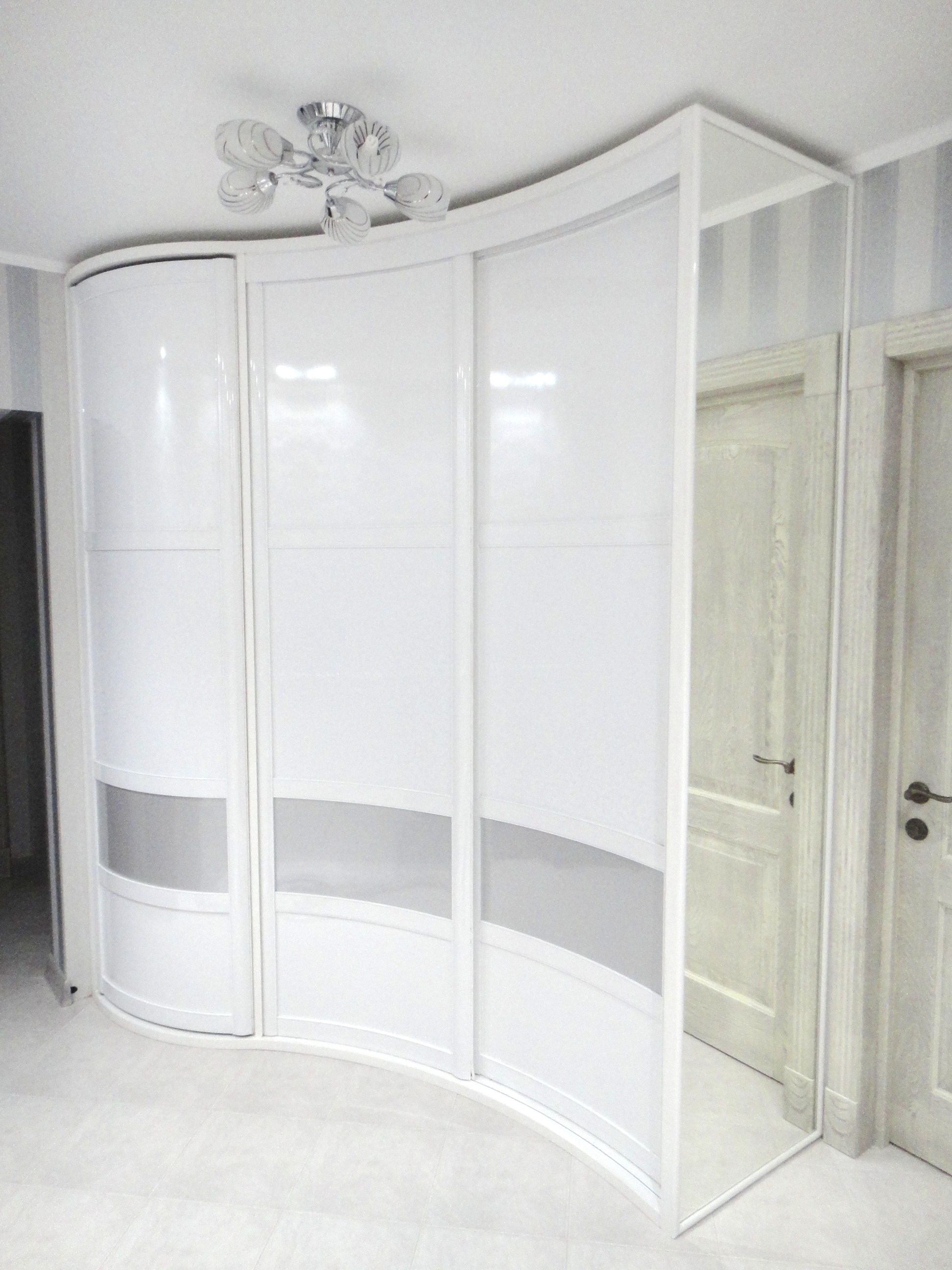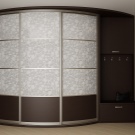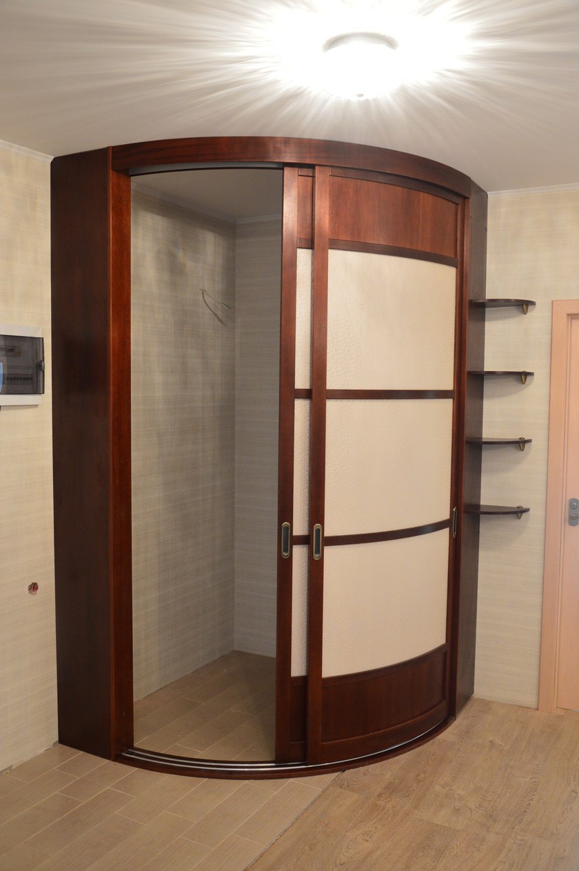Il existe des modèles en forme de cercle.Une telle armoire, quel que soit le lieu d'installation, crée un secteur en demi-cercle dans la pièce. Il semble inhabituel et original, mais il ne convient que pour la conception de couloirs modernes. Une autre option est un cabinet concave. Il est utilisé pour la vue angulaire des modules et donne à la forme une forme lisse.