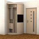 - coin. Lorsque vous choisissez la forme du mobilier, essayez de répondre à la question suivante: combien d'angles dans votre couloir? Si vous en trouvez un en plus, alors ce panneau achète un module angulaire. Mais rappelez-vous que ces conceptions sont difficiles à installer. La largeur de la porte doit être d'au moins 90 centimètres. Il est à noter que dans la pratique, cela se passe différemment: le meuble d'angle est généralement de petite taille et les réservoirs latéraux servent de base au compartiment. Ou d'une autre manière - deux armoires droites sont connectées perpendiculairement. Dans ce cas, les deux modèles ont une porte chacun, se fermant à la jonction. De la même manière, les modules pentagonaux et trapézoïdaux sont construits. Les modèles de coin sont volumineux, il est donc préférable de choisir la couleur blanche ou grise;